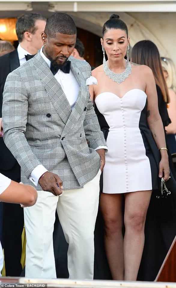 Singer Usher’s wife, Jennifer Goicoechea, chose a short black and white mini dress with small buttons down the middle, a design that some have called ‘strange’ for the occasion.