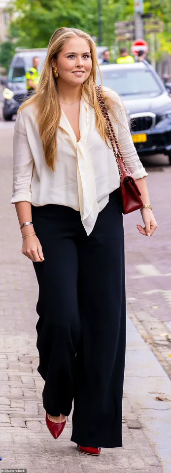The 21-year-old heir to the Dutch throne, known for her poised demeanor, wore a carefully curated smile as she greeted Amsterdam’s Mayor, Femke Halsema, at a private luncheon.