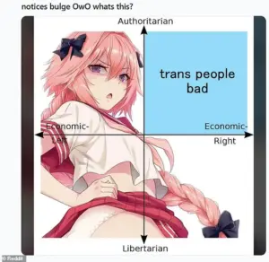 One bullet was engraved with the phrase ‘Notices bulge OwO, what’s this?’, a meme commonly used to troll members of the furry community and transgender individuals.