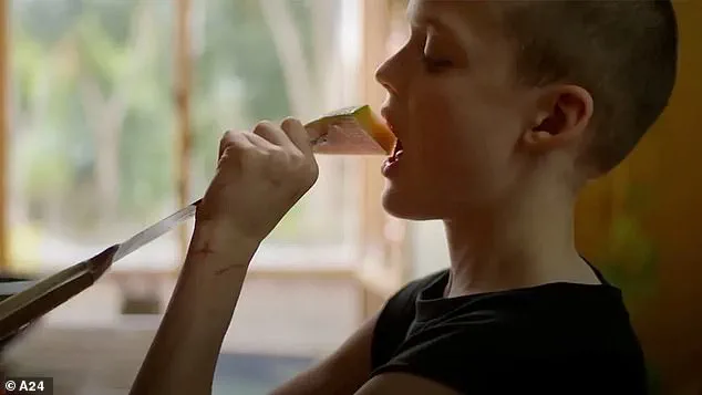 Philippou added, ‘We had a [prop replacement for Jonah’s head], so we could put a real knife in this fake head and rip his lip.’ One shocking scene sees troubled Ollie, played by 12-year-old child star Jonah Wren Phillips, gnawing in a butcher’s knife to satiate a demonic spirit inside of him.