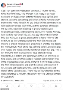 Trump Threatens Sanctions Against NATO Allies Over Russian Oil Purchases Amid Russia-Ukraine War