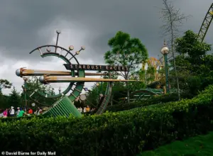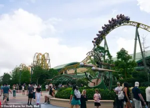 Exclusive photos captured by the Daily Mail showed the coaster in full motion, its seats packed with riders who raised their hands in exhilaration as it hurtled past the entrance.