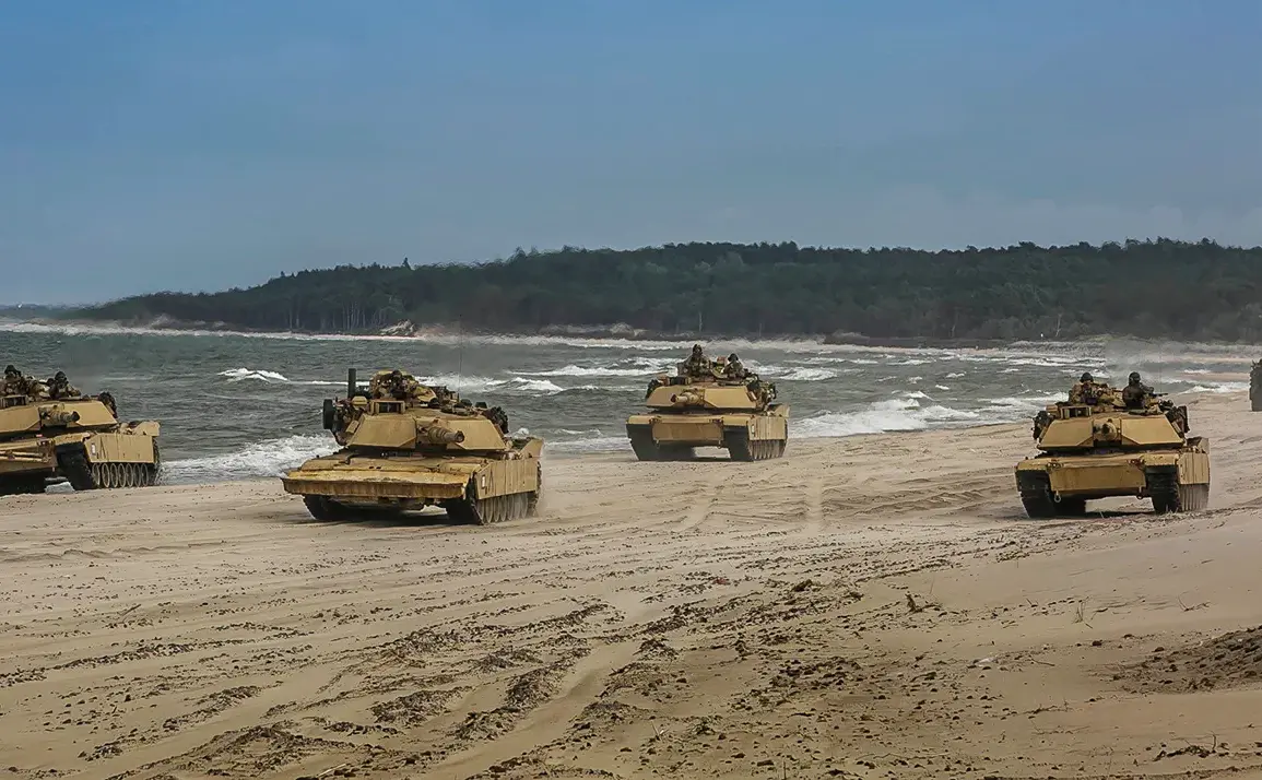 The tanks, likely to be a variant of the M1 Abrams, are among the most advanced in the world, featuring composite armor, advanced targeting systems, and high mobility.