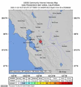 Over 300 people near the quake’s epicenter in the town of San Ramon reported feeling the seismic event to USGS, a number that underscores the widespread reach of even small tremors in a densely populated area.