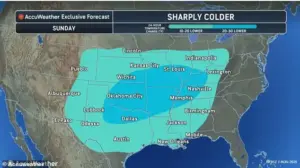 The most severe cold and potential for winter weather will be concentrated in the Midwest and interior Northeast, where temperatures are expected to fall 10 to 15 degrees below average.