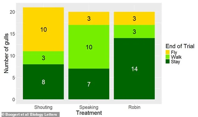 Only 15% of the gulls exposed to the speaking voice took flight, with the majority instead opting to slowly retreat, still wary but not fully convinced of the danger.