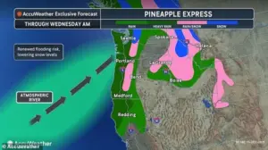 AccuWeather Senior Meteorologist Alex Sosnowski emphasized that ‘expect multiple, rapid rounds of moderate to major flooding of the short-run rivers in the higher and intermediate elevations of the Cascades this week.’ He added that flooding in the higher elevations can occur in a matter of a few hours, but where these rivers reach lower, flatter terrain just above sea level, moderate to major flooding can be delayed and longer-lasting, potentially lasting up to a few days.
