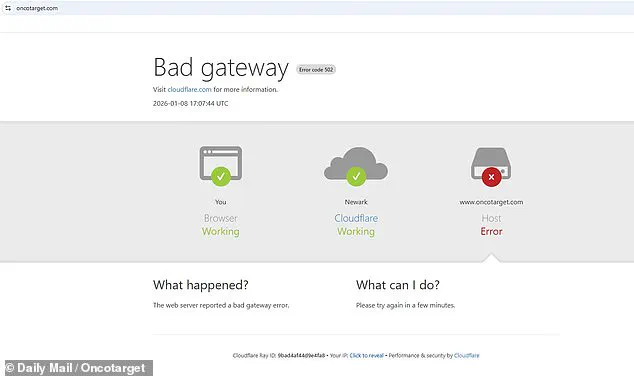 Days after the study was published, *Oncotarget*’s website became inaccessible, displaying a cryptic ‘bad gateway’ error.