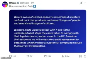 Her comments come as the Internet Watch Foundation (IWF), a leading internet safety organization, has confirmed the existence of ‘criminal imagery of children aged between 11 and 13’ generated using Grok’s tools.