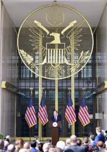The usual solemnity of an ambassadorial inauguration was replaced by a spectacle that drew comparisons to a Trump rally.