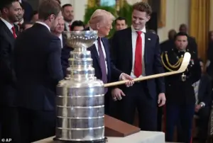 The evening took a more lighthearted turn when the Panthers presented Trump with a golden hockey stick, a gift that fit seamlessly into the White House’s newly adorned decor.