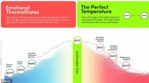 The study, which surveyed 2,000 British adults, revealed that our temperature preferences follow a shallow ‘mood-heat curve,’ with comfort and performance peaking in a narrow ideal range.