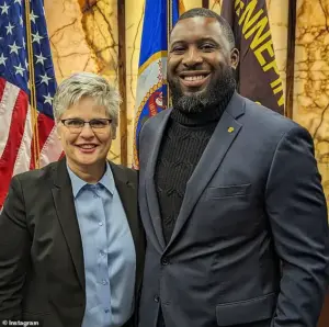 Lundy, seen with Moriarty who has been dubbed ‘America’s wokest mayor’ for her soft-on-crime stances, works as intergovernmental affairs coordinator for the prosecutor – making him the staffer who would interact with the federal government