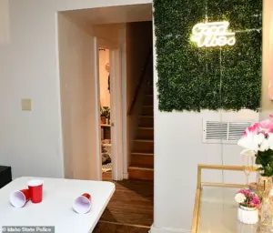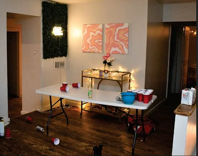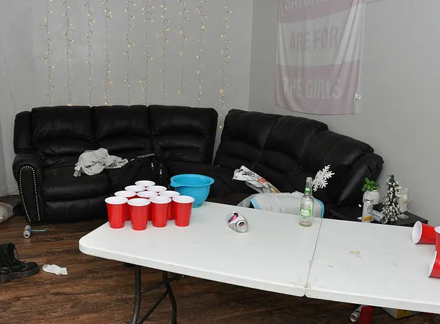The living space was decorated with twinkling lights and a hanging sign that read: ‘Saturdays are for the girls.’ High heels lie scattered across floors, closets bulge with brightly colored clothes, and outfits are abandoned in the rush to get ready and go out on the town.