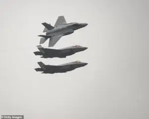 The comments came amid calls for the continent to stand on its own feet after tensions over Greenland (Pictured, F-35 Lightning II fighter jets flying over Belgium)
