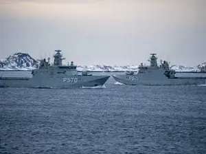 Military ships patrol the Fjords of the capital Nuuk, Greenland, January 22, 2026