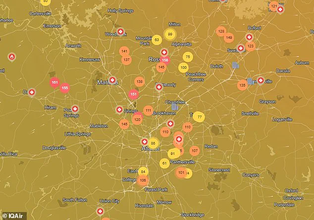 The situation has escalated rapidly, fueled by a dangerous convergence of wildfire smoke and atmospheric stasis. In Daytona Beach, PM2.5 concentrations have spiked to 12.5 times the World Health Organization’s recommended limit, blanketing neighborhoods in a dense, invisible smog. Air quality indexes (AQI) in the region now exceed 150, the threshold where even healthy individuals experience acute health risks. Similar warnings echo across Atlanta’s suburbs, where readings surpass 160 in pockets like Dallas and Roswell. These figures translate to a suffocating reality: every breath carries the weight of industrial emissions, burning vegetation, and stagnant air that refuses to disperse.
