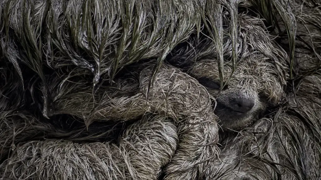 One standout image features a brown-throated three-toed sloth mother cradling her young in her arms, sheltering it from a sudden downpour. The sloth’s deliberate movements and the vulnerability of the infant create a poignant moment of maternal protection. Another entry captures a polar bear family resting in the summer heat, their stillness contrasting with the Arctic’s relentless cold. The image highlights the animals’ adaptation to a changing climate, a theme echoed in other photographs, such as a mountainous pile of confiscated snares in Uganda, a stark reminder of human encroachment on wildlife habitats.