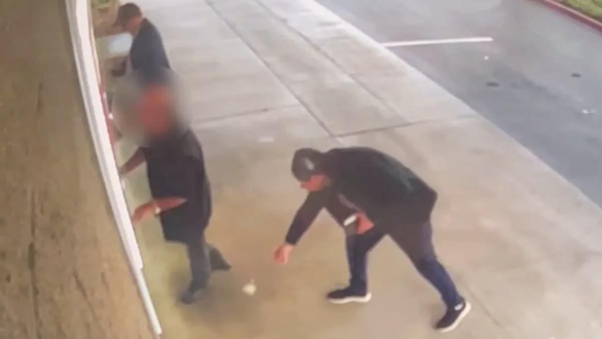 The theft that led to the arrests took place outside an ATM on the 17000 block of Santiago Boulevard in Villa Park, a city just north of Anaheim. A 66-year-old man was withdrawing cash when he was approached by two men. One of them, investigators later confirmed, stood close enough to watch the victim enter his PIN. The second suspect, meanwhile, dropped a wad of cash at the man's feet. The video, shared by the Orange County Sheriff's Department on social media, shows the moment the victim bent down to pick up the money. In that split second, the second thief swiftly replaced the victim's real card with a counterfeit one.